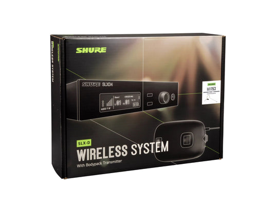 Shure SLXD14E/153B digital wireless microphone system, includes one SLXD4 receiver with 19'' rack mount kit and one SLXD1 bodypack transmitter with MX153 earset headworn microphone (omni-directional, black)