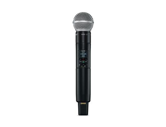 Shure SLXD24E/SM58 digital wireless microphone system, includes one SLXD4 receiver with 19'' rack mount kit and one SLXD2 handheld transmitter with SM58 microphone cartridge (dynamic, cardioid)